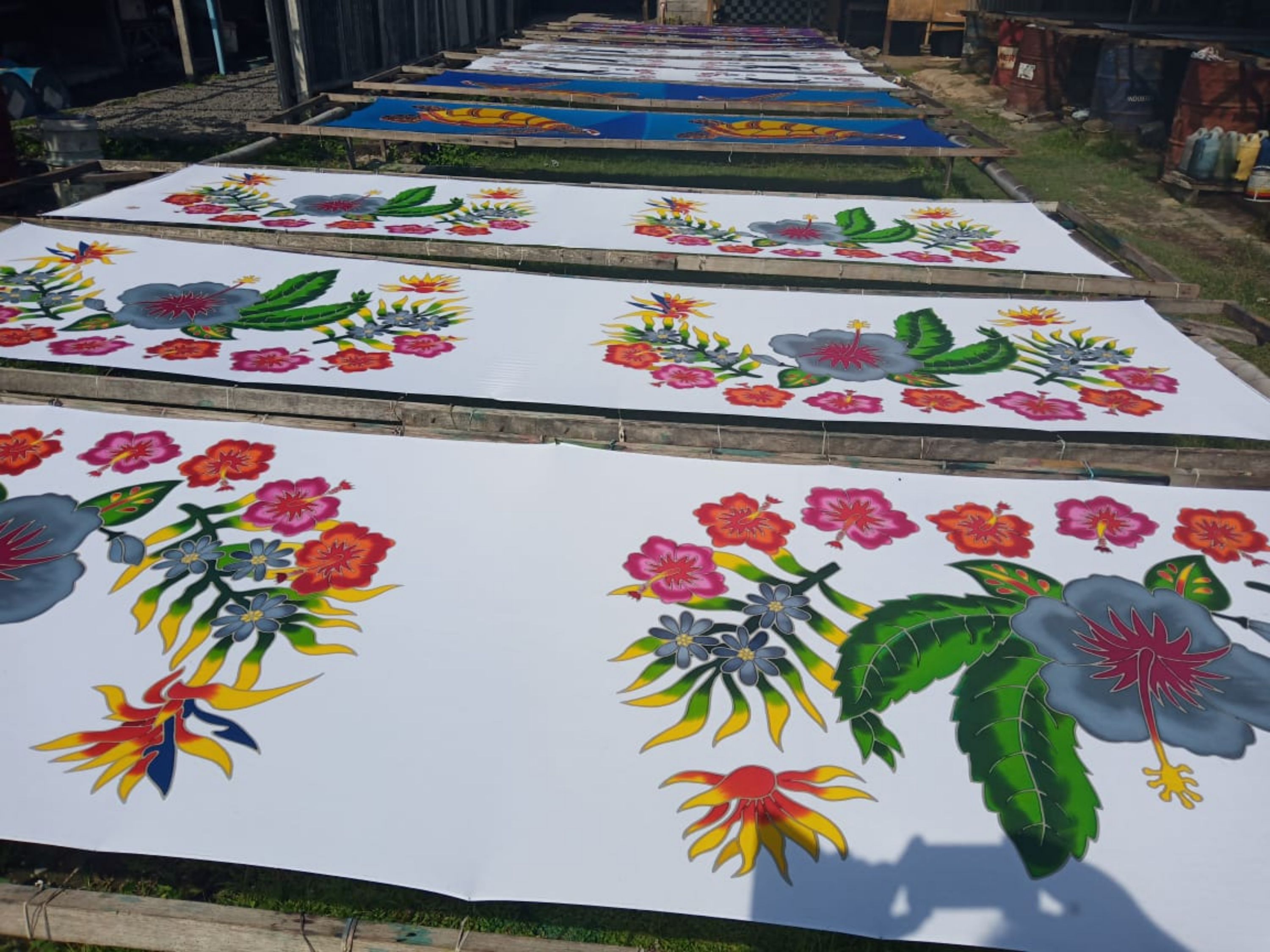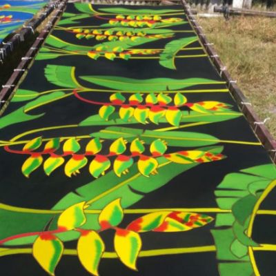 Screen printing of sarongs rayon (viscose) or cotton, hand painted, handprint, printed sarong batik, Mandala sarong.